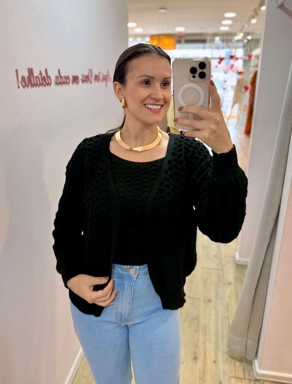 Twin set (casaco+blusa) tricot preta