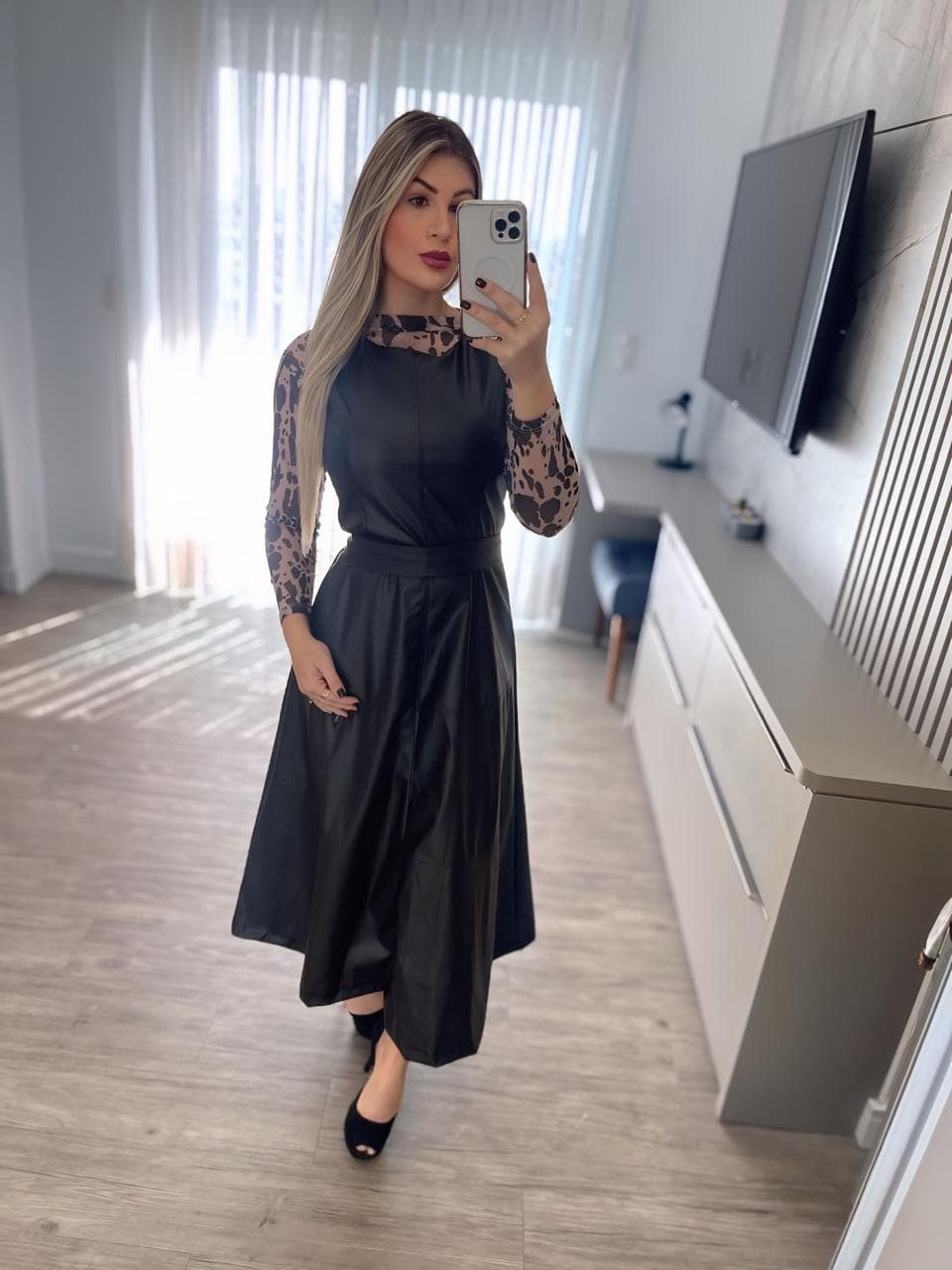 Vestido courino Betina preto cod. 1119